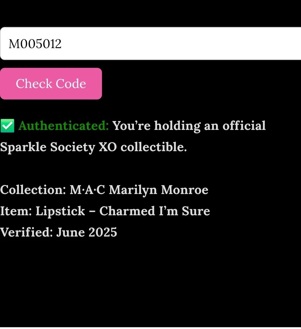 Every truly iconic Sparkle Society XO piece purchased directly from us comes with a Certificate of Authenticity and a holographic serial sticker — proof you’ve scored something rare, real, and radiant. Each verified piece is part of a vault-worthy collector drop. Use the COA number found on your holographic sticker to confirm it's 100% legit and officially Sparkle Verified.